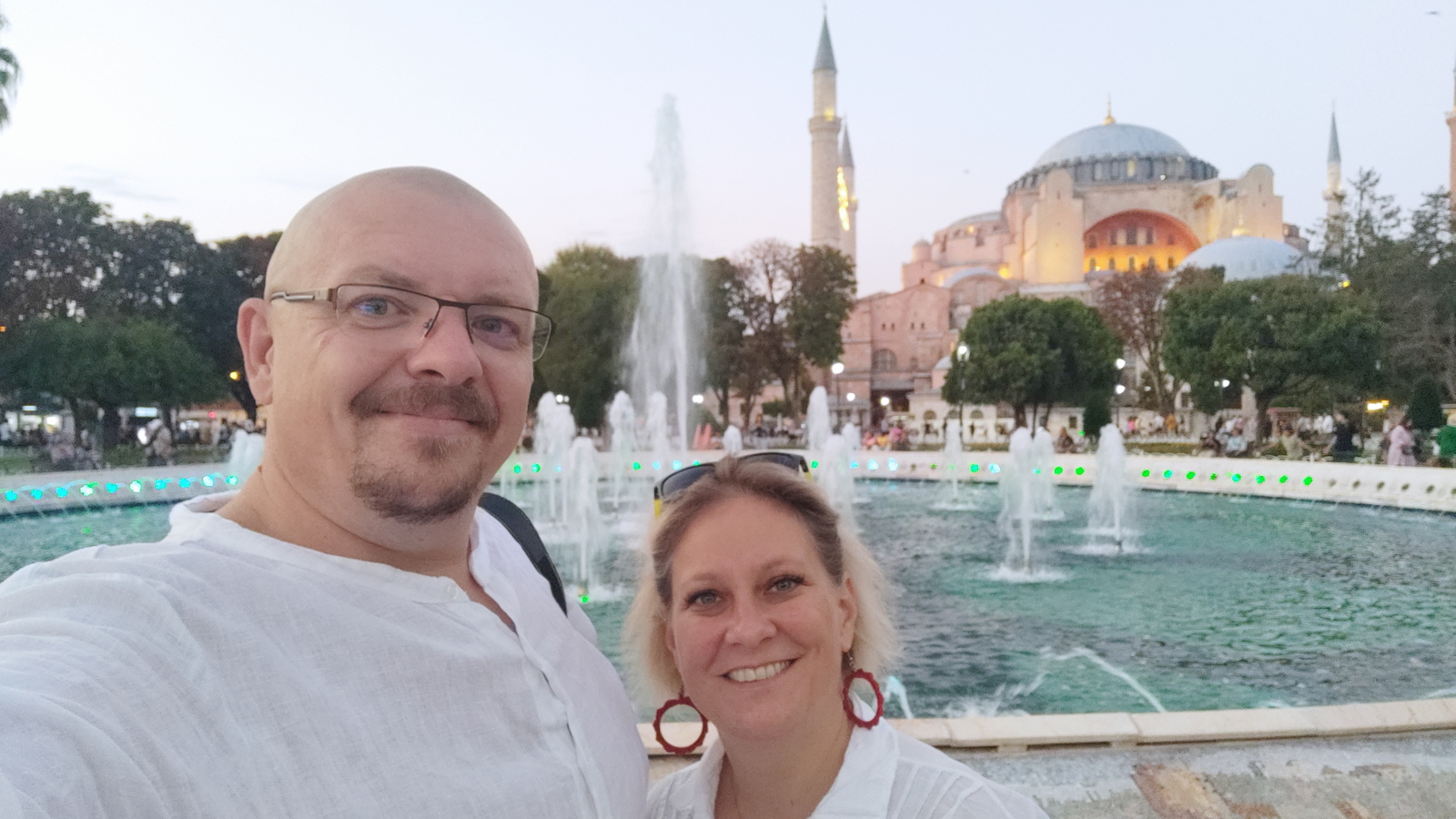 6. Nap Isztambul még mindig. Hagia Sophia, nagy bazár, egyiptomi bazár, és hajóval át a Boszporuszon Ázsiába. Ez volt a terv…. Először is tisztázzuk, hogy a motoros cipő nem erre való. 🙂 Másodszor.. Igazi kurva meleg volt. Tervek teljesítve. Bár először nem a megfelelő hajóval, nem a megfelelő helyre, de ez mellett az utastájékoztatás mellett, az a csoda, hogy nem valahol Afrika partjainál dekkolunk. Ázsiában ettünk fánkot, ittunk kávét és irány vissza. A nagy bazár mint egy keleti pláza, férfi szemmel borzasztó, és Szandra szerint női szemmel is. Ha kivonnánk a képletből az édesség és az ékszerárusokat, csak néhányan lézengenének abban a nagy hodályban. Az egyiptomi bazár az ő fűszerválasztékával már más tészta. És rend és tisztaság. Ha az árusok csak fele ennyire lennének erőszakosak, akár még vásároltunk is volna valamit/bármit. Ilyen tömeget, mint ami itt van, talán csak a békemeneten látni. 🙂 1 perc / 10 m az átlag sétasebesség. És jönnek a tömegben a buzi motorosok is 🙂 Az érintetteknek üzenem, nem kell aggódni a hűtőmágnesek meg vannak. A közlekedés ellenére szeretjük Isztambult. A török autópálya felügyelettől várom a szerelmes levelet. Szerintem és szerintük másképp működik a fizetési rendszer. Attól tartok, ők az erősebb kutya. Holnap 340 km, vissza Bulgáriába. Burgasz, tengerpart.