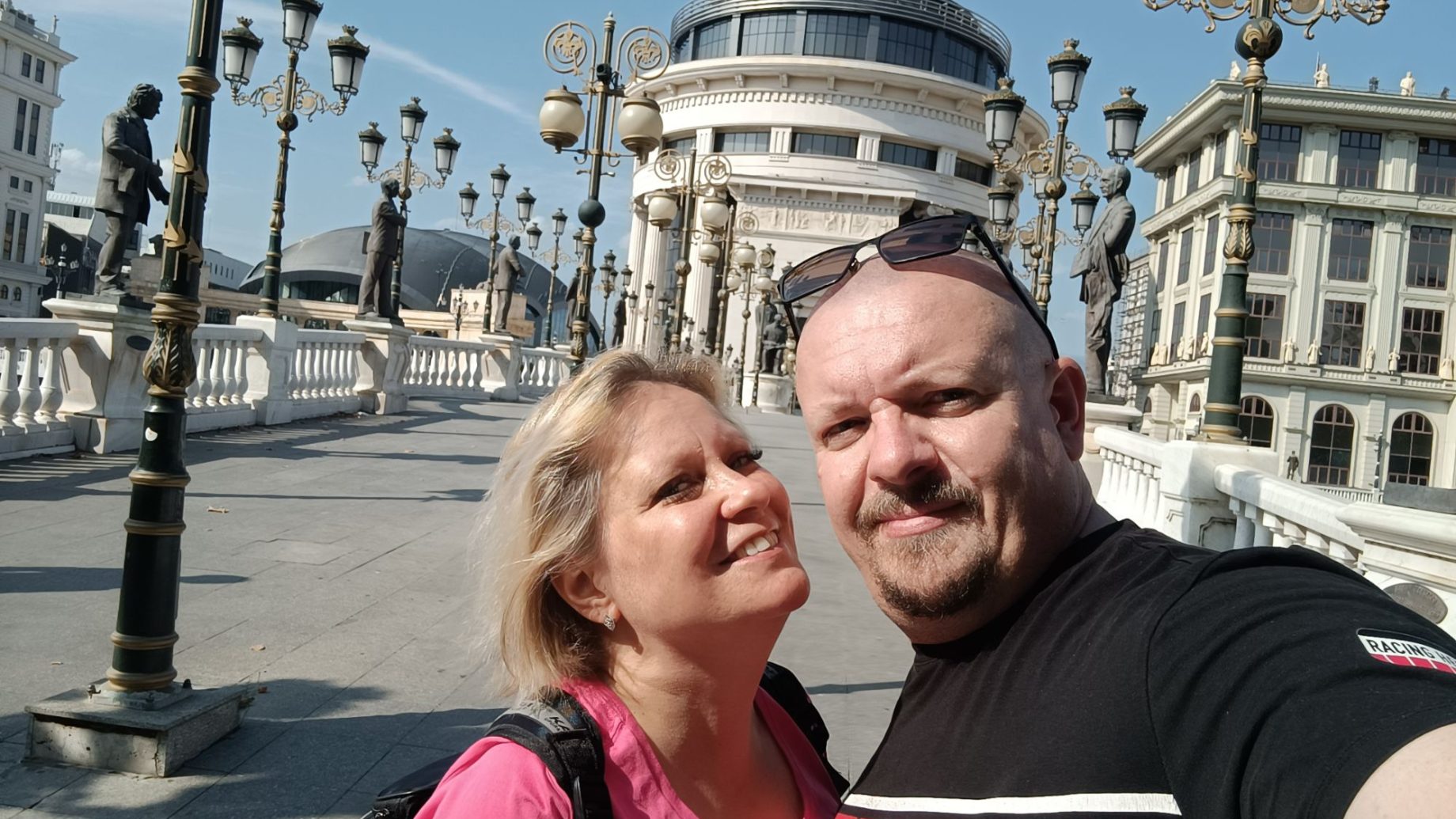 És akkor a cél állomás. Szkopje meglepően szép, közben a várakozásokat alulmúlóan szemetes, balkáni. Az ivóvizet már fogmosásra sem ajánlják, ugyanakkor gyönyörű és korban teljesen eltérő épületek állnak egymás mellett „majdnem” harmóniában. Ma kihagyjuk az éttermet. Hideg kaját vásároltunk és a rekreációs döglés mellett döntöttünk. Nagy kerek ágyunk van és szobánként saját pezsgőfürdő. 🙂