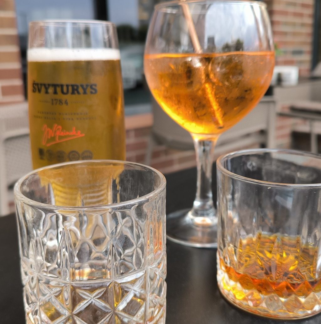 100 km múlva, tankolunk. Már újra Litvániában vagyunk. Ebben a pillanatban süt a nap, de körben be van borulva.